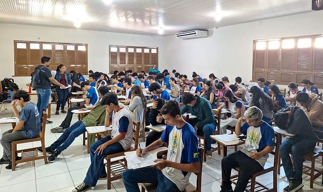 As escolas da rede estadual do Acre estão aplicando o 4° Simula Enem do programa Pré-Enem Legal. Este é o último, de uma série de simulados que foram aplicados ao longo do segundo semestre de 2024 para os 9.859 estudantes da terceira série do ensino médio da rede.