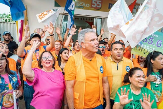 Seguidos de uma multidão de apoiadores em bandeiraço e caminhada, Sérgio Petecão, candidato ao governo do Acre, o seu vice, Tota Filho, e Vanda Milani, candidata ao Senado do República, inauguraram comitê na Avenida Castelo Branco, principal avenida de Senador Guiomard, na tarde desta quarta-feira, dia 31.