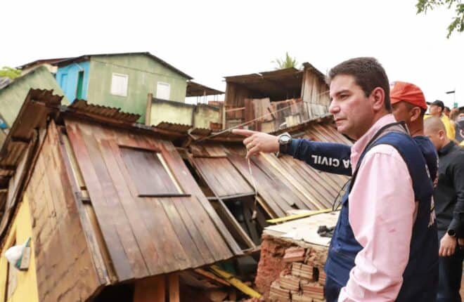 O governador Gladson Cameli visitou na manhã deste domingo, 16, o bairro Cidade Nova, em Rio Branco, onde seis casas desmoronaram após uma madrugada de chuva intensa na capital.
