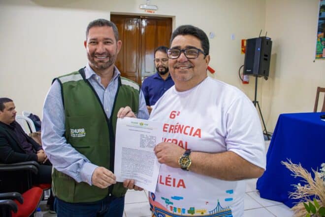 Durante a conferência, o prefeito Carlinhos do Pelado e o Secretário de Estado de Habitação e Urbanismo ( SEHURB), Egleuso Santiago assinaram um convênio para regularização fundiária e construção de casas populares principalmente para as famílias que moram em áreas atingidas por inundações.