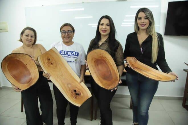 Com carga de 120 horas, a capacitação foi ministrada pelo Senai e financiada pelo Programa REM Acre. Os participantes receberam dois certificados, um de segurança no trabalho de confecção das gamelas, que exige a utilização de motosserra, e outro de produção das peças.