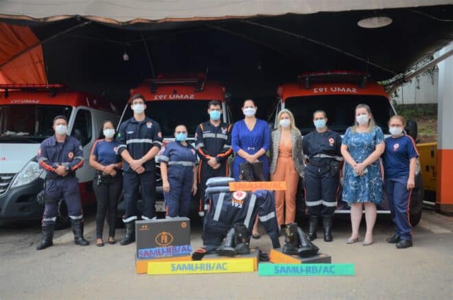 Profissionais do Serviço Móvel de Urgência (Samu) do Acre receberam na manhã desta quarta-feira, 16, novos uniformes para continuar a desempenhar a missão de salvar vidas. A entrega foi realizada no pátio da unidade, em Rio Branco, e contou com a presença do coordenador do Samu, Pedro Pascoal, e da secretária de Estado de Saúde, Paula Mariano.