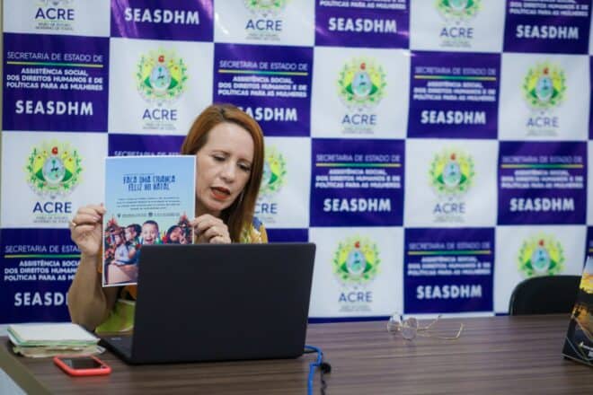 A secretária enfatiza que nas prioridades demandadas pelo governo para as festividades de final de ano estão o projeto Luzes do Natal, que é a decoração na área central, a festa de réveillon, ambas em parceria com a Prefeitura de Rio Branco, e a campanha de arrecadação de brinquedos e cestas básicas.