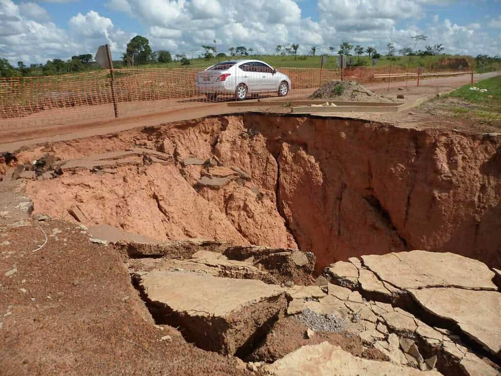 Desviar os milhares de buracos é praticamente impossível e, os desmoronamentos colocam em risco a vida dos condutores que passam pelo local diariamente.