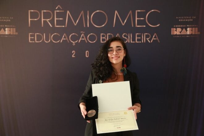 A jovem acreana Ana Evelyn Andrade Martins, de 18 anos, é uma das vencedoras da primeira edição do Prêmio MEC da Educação Brasileira, iniciativa nacional que reconhece estudantes, escolas, municípios e estados por avanços na qualidade da aprendizagem na Educação Básica. A estudante, que concluiu o ensino médio em 2024 no Colégio de Aplicação e recentemente ingressou no curso de Medicina da Universidade Federal do Acre (Ufac), foi premiada na categoria Exame Nacional do Ensino Médio (Enem).