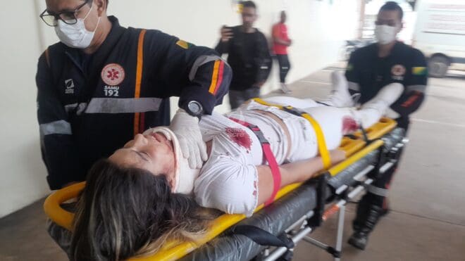 Michele Stefany Veiga Lucas, de 26 anos, sofreu corte na cabeça, sangramento no ouvido e escoriações; Samu a encaminhou ao pronto-socorro em estado estável.