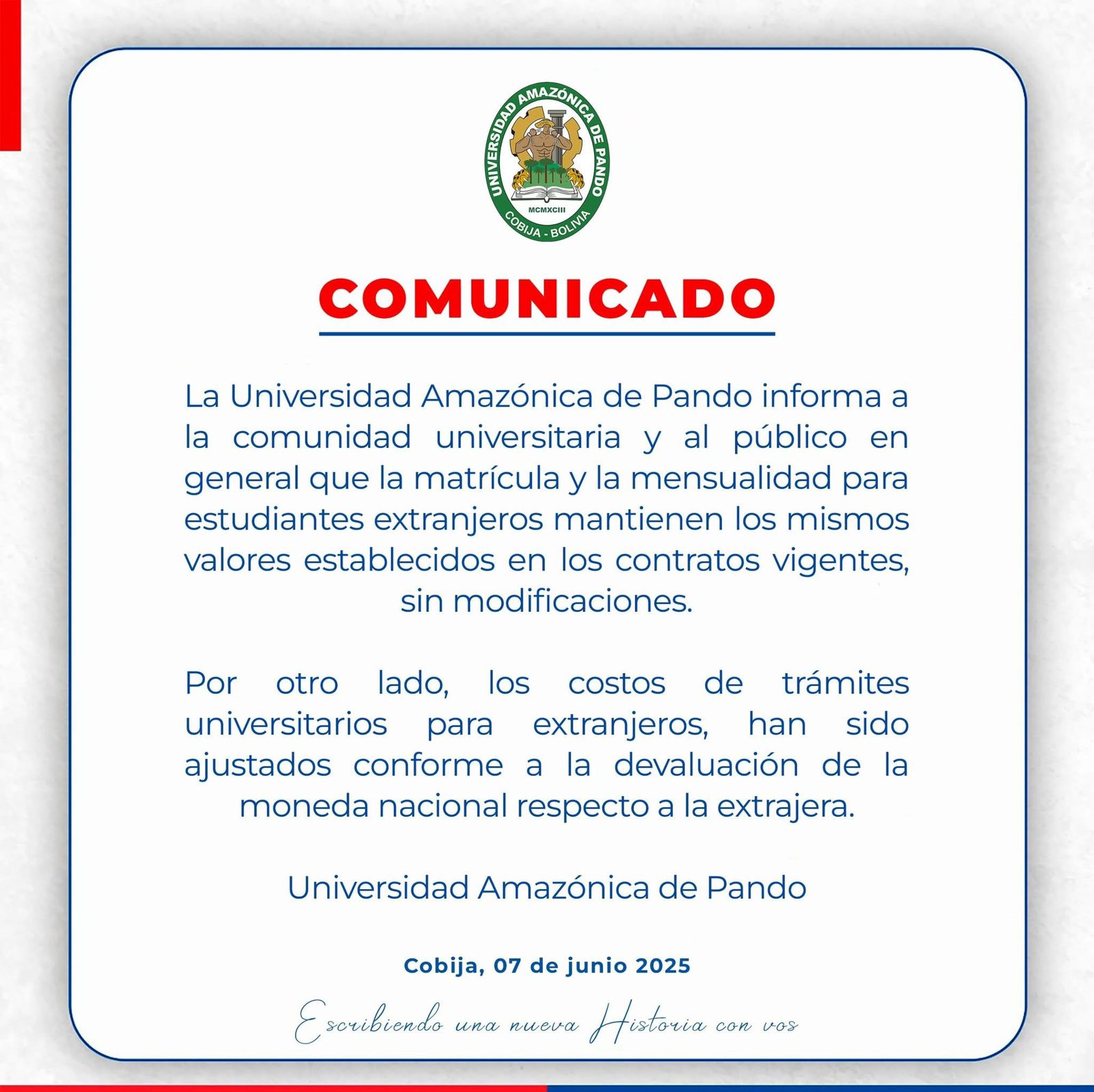 Uma acadêmica de medicina detalhou como os estudantes descobriram o reajuste. Segundo ela, os aumentos começaram a ser percebidos em julho, sem qualquer aviso prévio da instituição. Documentos antes avaliados entre 14 e 180 bolivianos passaram a custar até 33 mil e 500 bolivianos, dependendo do procedimento.