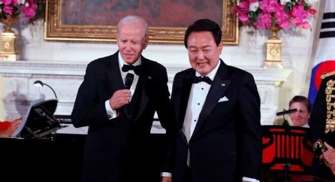 Durante uma coletiva de imprensa posterior a uma reunião na Casa Branca, os dois dirigentes multiplicaram as advertências contra o vizinho do norte e enfatizaram seus meios de dissuasão e sua “aliança inabalável”, forjada “em tempos de guerra e que prosperou em tempos de paz”, segundo Biden.