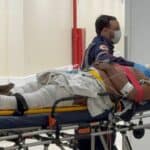 Com o impacto, o motoboy foi arremessado ao solo e sofreu fraturas nos dois fêmures, além de suspeita de fratura no quadril.