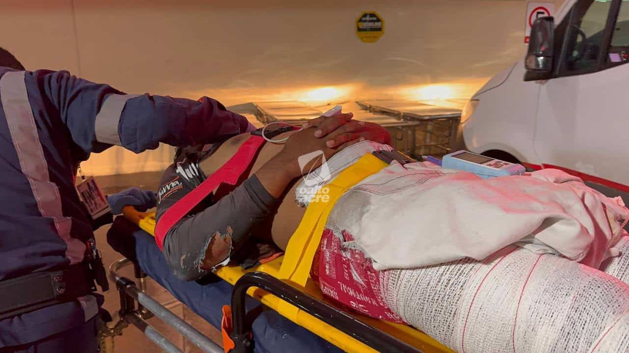 No local, os socorristas encontraram a vítima, identificada como Erivelton da Silva, de 34 anos, caída ao solo. Ele apresentava ferimento cortante no supercílio esquerdo e escoriações pelo corpo, mas, segundo a equipe de resgate, não havia sinais aparentes de fraturas.