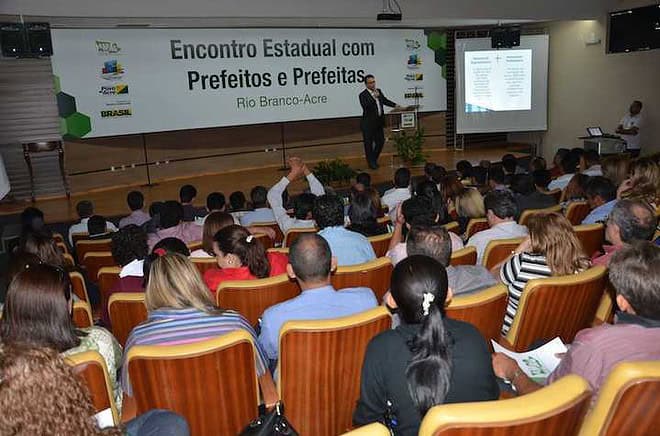 O Encontro Estadual com Prefeitos em Rio Branco na sede da Federação do Comércio – Fecomercio contou com a presença de 21 prefeitos acreanos. O evento aguarda os Ministros para debater sobre as duvidas dos administradores municipais a respeito dos investimentos do Governo Federal. O prefeito Everaldo Gomes acompanhado de alguns secretários se faz presente no encontro que vai até às 16 horas desta sexta-feira, 16.