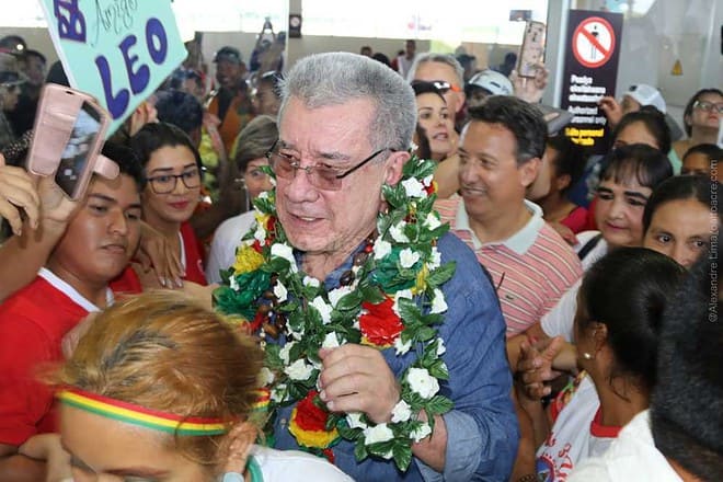 Por volta das 11h30, Leopoldo desembarcou em solo pandino e a saída do aeroporto foi confusa e tumultuada. Todos queriam dar um abraço e uma palavra de carinho. O cordão de isolamento não foi suficiente.