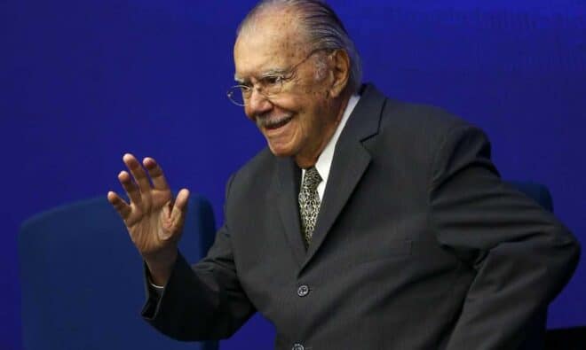 O ex-presidente da República, José Sarney, durante solenidade de transmissão de cargo do ministro dos Transportes, Renan Filho.