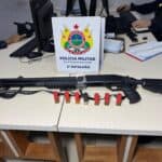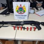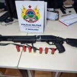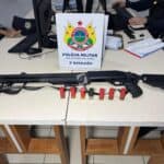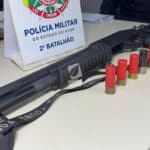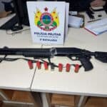 O suspeito foi abordado e submetido à revista pessoal, mas nada de ilícito foi encontrado com ele naquele momento. No entanto, durante buscas nas residências por onde ele teria passado, os militares localizaram uma espingarda calibre 12, municiada com sete cartuchos intactos.