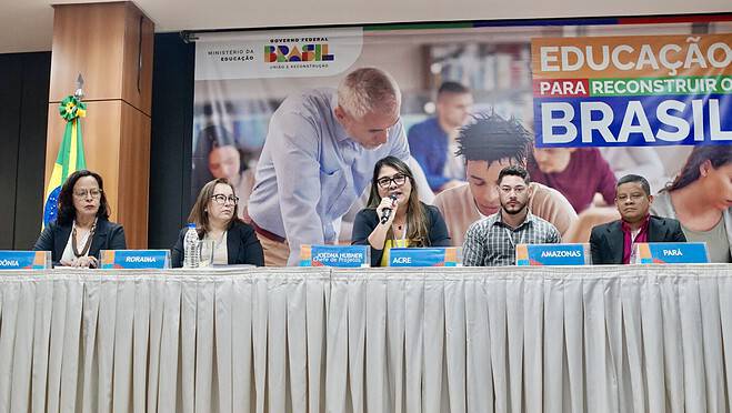 O Acre participou de mesa de apresentação de experiências locais junto com outros estados do Norte do país. Também estão participando do encontro a assessora pedagógica do Departamento de Ensino Médio da SEE, Kátia Leão, e duas integrantes do Ieptec: a diretora de ensino, Mara Lima, e a chefe do Departamento de Planejamento e Orçamento, Aldenice Ferreira.
