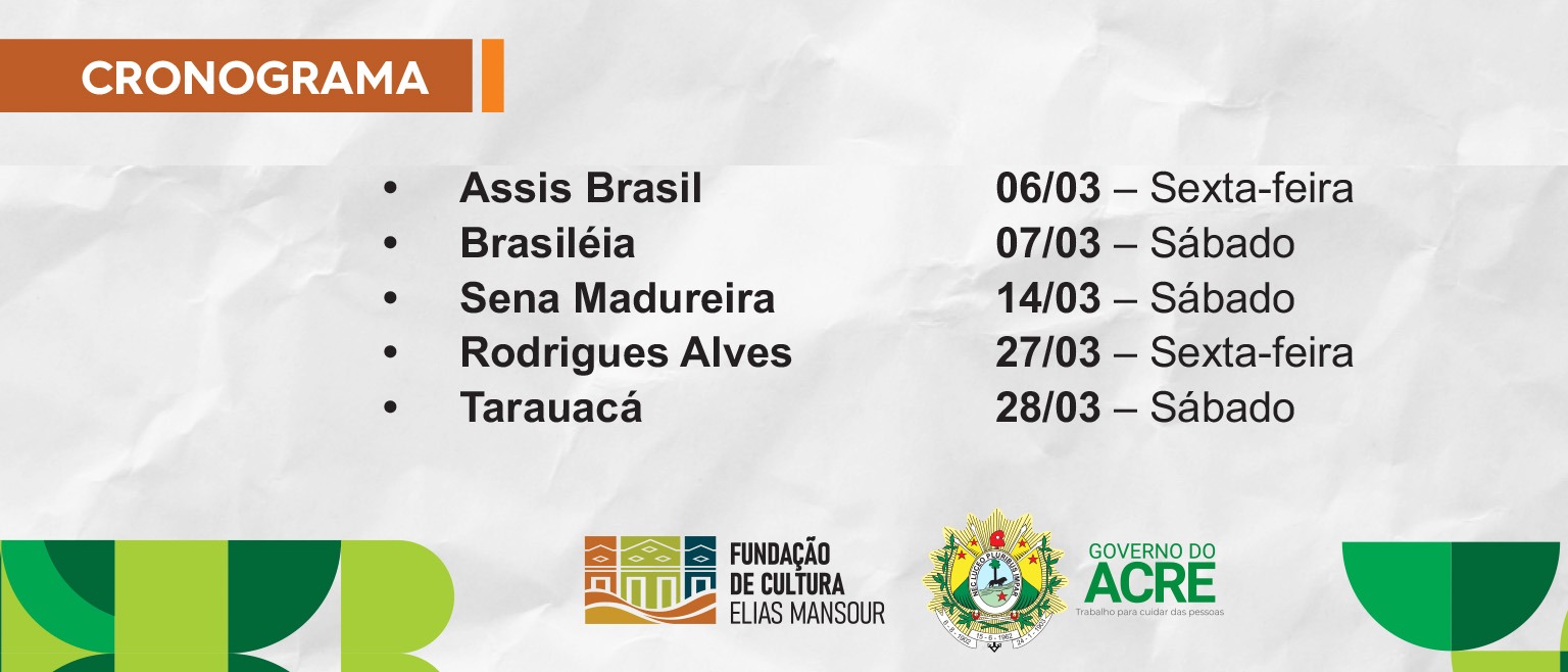 O Circuito Cultural Itinerante do Acre prossegue ao longo deste mês, com previsão de alcançar também os municípios de Assis Brasil, Brasileia, Sena Madureira, Rodrigues Alves e Tarauacá, consolidando-se como política pública de incentivo à cultura e de integração regional.