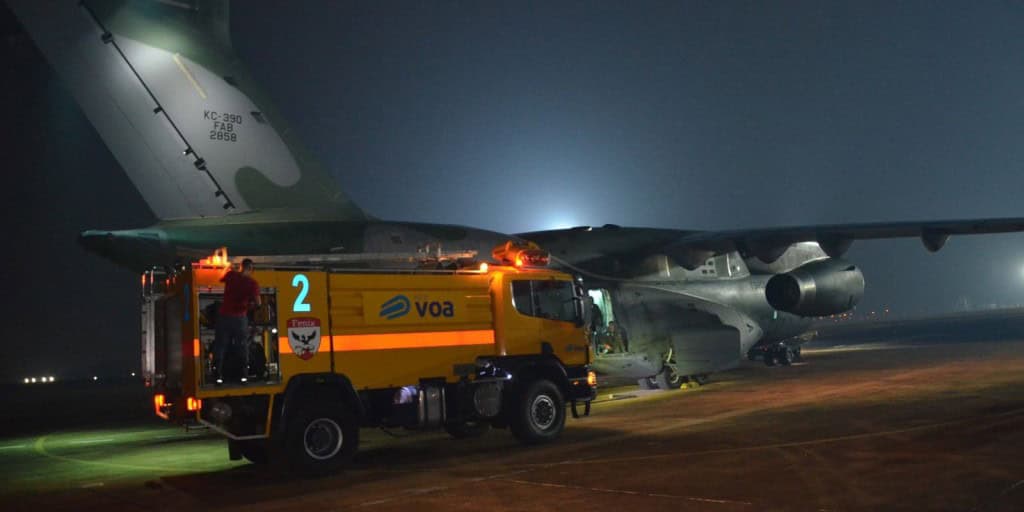 A Força Aérea Brasileira (FAB) designou uma aeronave KC-390 Millennium, operada pelo Primeiro Grupo de Transporte de Tropa (1º GTT) para auxiliar no combate às queimadas no interior de São Paulo. No final da noite de ontem o avião chegou ao Aeroporto de Ribeirão Preto, cidade mais atingida pelos incêndio.