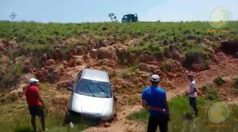 A distancia foi grande até bater com a frente do carro e parar. Por pouco e um milagre, ninguém se feriu e conseguiram subir o barranco até pedir ajuda e continuar a viajem.