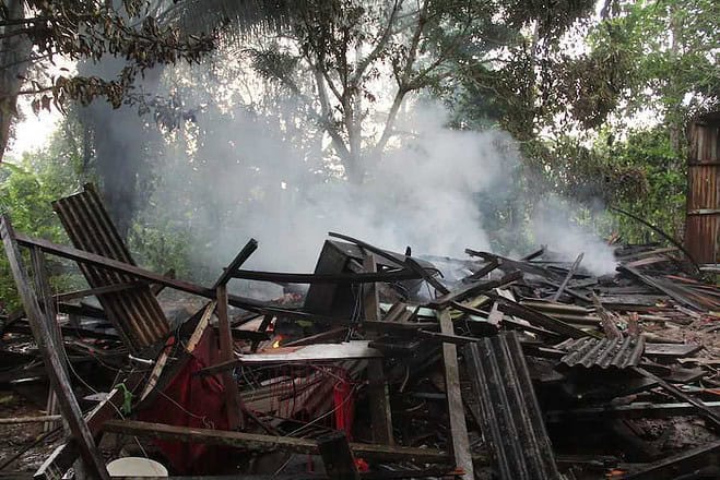 Em meio a uma forte chuva que caiu na cidade de Brasiléia, com direito a relâmpagos e trovoes, uma família foi surpreendida por um incêndio onde destruiu cerca de 90% da casa onde abrigava sete pessoas, entre adultos e crianças no Bairro Samaúma, próximo a praia do Urubu.