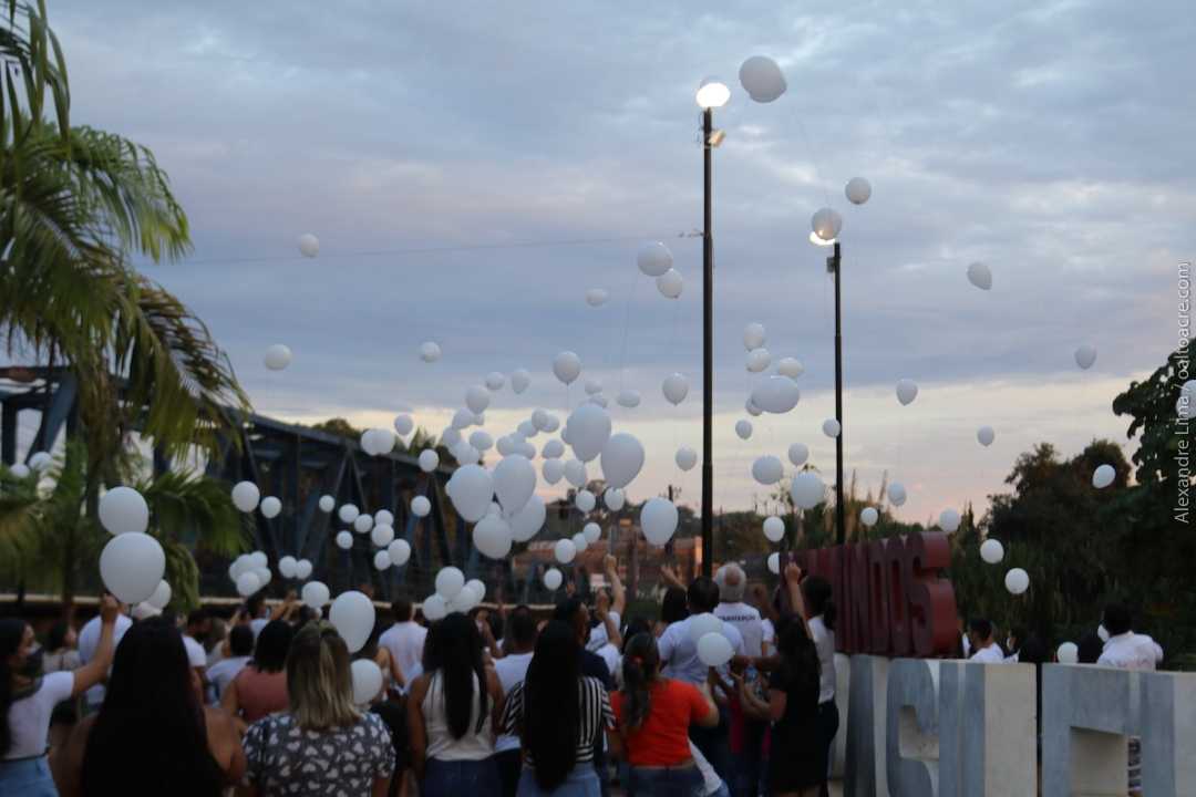 Um dos momentos emocionantes no ato, foi a soltura de balões brancos no mirante localizado ao lado da ponte metálica José Augusto, que liga os município de Brasiléia à Epitaciolândia.