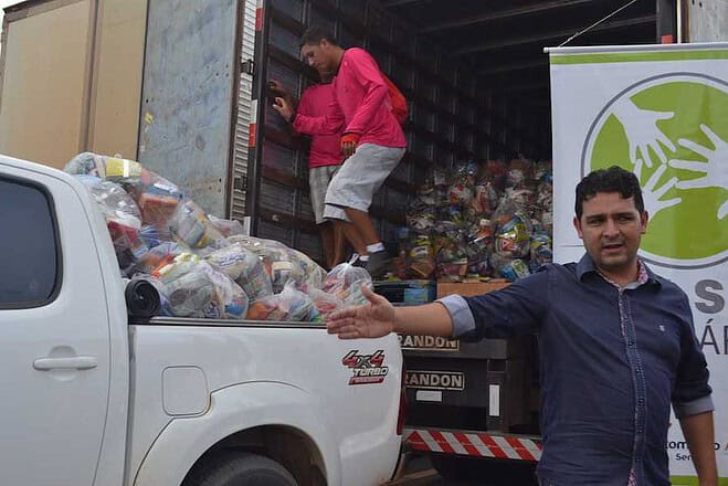 O presidente da Federação do Comércio de Bens, Serviços e Turismo do Acre (Fecomércio), Leandro Domingos, esteve na cidade de Epitaciolândia no tarde desta segunda-feira, dia 30, para realizar a entrega oficial de 1000 cestas básicas.