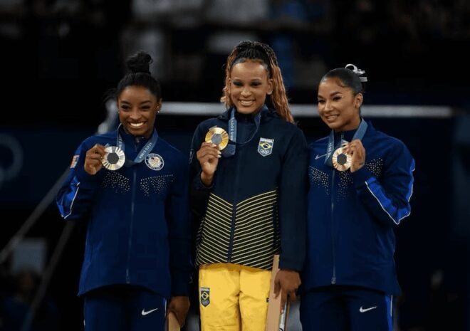 A entidade afirma que continuará atuando para que a ginasta mantenha a medalha de bronze que recebeu na cerimônia icônica na qual Chiles e Simone Biles (prata) fizeram reverência à campeã Rebeca Andrade.