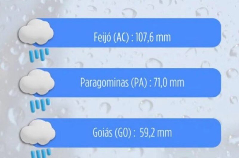 Feijó, município acreano conhecido como “Capital do Açaí”, registrou 107,6 milímetros de chuva nas últimas 24 horas, a maior marca pluviométrica do Brasil, segundo dados do Instituto Nacional de Meteorologia (Inmet). Nenhuma das mais de cinco mil cidades monitoradas pelo órgão superou o volume acumulado na região.