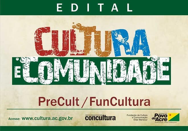 A Fundação Elias Mansour (FEM) prorroga o prazo do edital Cultura e Comunidade para o dia 10 de janeiro. O proponente classificará o projeto, de acordo com a tabela presente no Anexo V, em uma das seguintes áreas: artes cênicas, audiovisual, artes visuais, patrimônio histórico e cultural, música, humanidades, artes integradas, outras áreas culturais. O regulamente está disponível na página www.cultura.ac.gov.br.