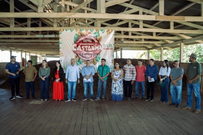 Lançado oficialmente nesta sexta-feira, 7, o Festival Internacional da Castanha da Amazônia – FIC 2025, será realizado de 21 a 23 de fevereiro no município de Epitaciolândia, no Alto Acre. O evento vai celebrar a potência do agroextrativismo cooperativo do Acre e da Amazônia, onde tradição, inovação e futuro se conectam para fortalecer a economia sustentável, gerar renda e valorizar quem transforma a conservação da floresta em um caminho de prosperidade.
