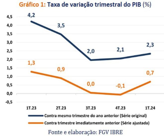 “O crescimento de 0,7% da economia no primeiro trimestre, na comparação com o quarto de 2023, foi bastante disseminado na maior parte das atividades econômicas e componentes da demanda. Em grande parte dos segmentos, foram registradas taxas mais positivas no primeiro trimestre do que o observado no final de 2023. De modo geral, isto indica um bom início de 2024 para a economia brasileira, de maneira até mais robusta que o crescimento de 2023.