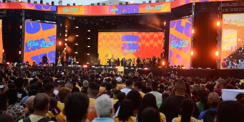 A Marcha para Jesus do Rio de Janeiro, na 17ª edição levou milhares de fiéis para o centro da cidade, na tarde deste sábado (25). O público iniciou a concentração, a partir das 14h, na Avenida Presidente Vargas, altura da Avenida Passos. Na sequência, o grupo seguiu para o palco montado na Praça da Apoteose. Caravanas de fiéis chegavam de ônibus, metrô e ônibus, vindas principalmente da Baixada Fluminense.