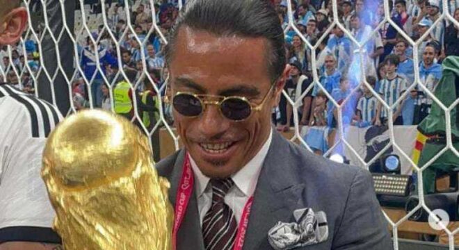 O empresário — que se chama Nusret Gökçe mas é mais conhecido como Salt Bae — tirou fotos com jogadores e até segurou a taça da Copa, mesmo sem ser uma autoridade pública nem um dos jogadores campeões. Salt Bae fez cinco publicações nas quais exaltava a conquista da Argentina, apesar de ser turco e sempre aparecer “dando moral” aos jogadores e artistas famosos de diversas nacionalidades.