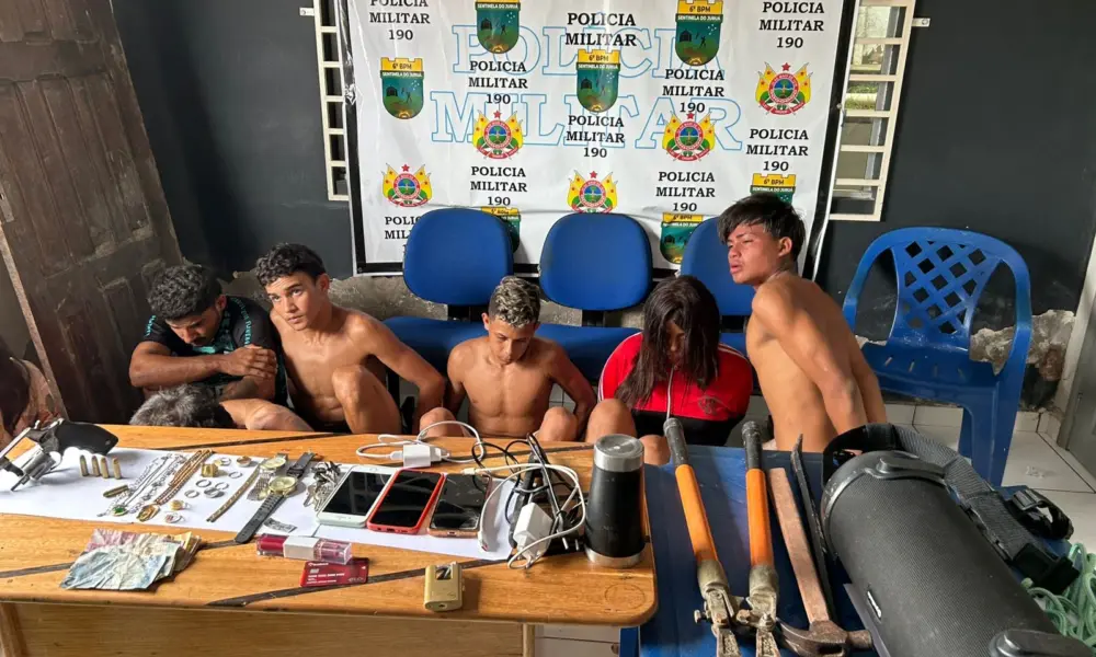 Sete pessoas, entre elas duas mulheres, foram presas no sábado, 13, em Marechal Thaumaturgo, durante uma ação da Polícia Militar, pelos crimes de furto qualificado, associação criminosa, posse irregular de arma de fogo, corrupção de menores e receptação.