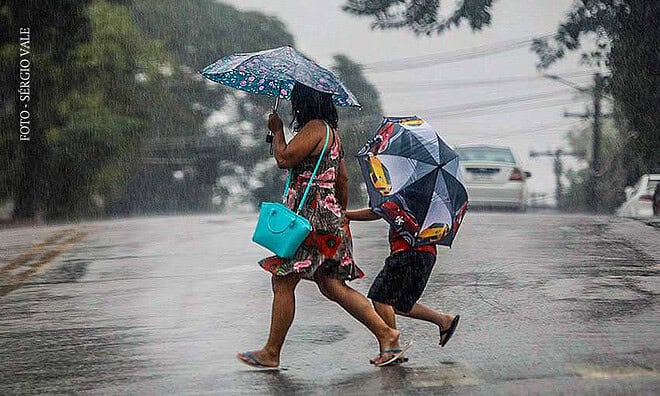 Segundo o especialista, o tempo pode ser quente e abafado, com sol, nuvens e chuvas a qualquer hora, principalmente a partir da tarde. Segundo ele, existe uma grande possibilidade de chuvas com raios e trovoadas. “Alta probabilidade de chuva forte, com raios”, diz Friale.