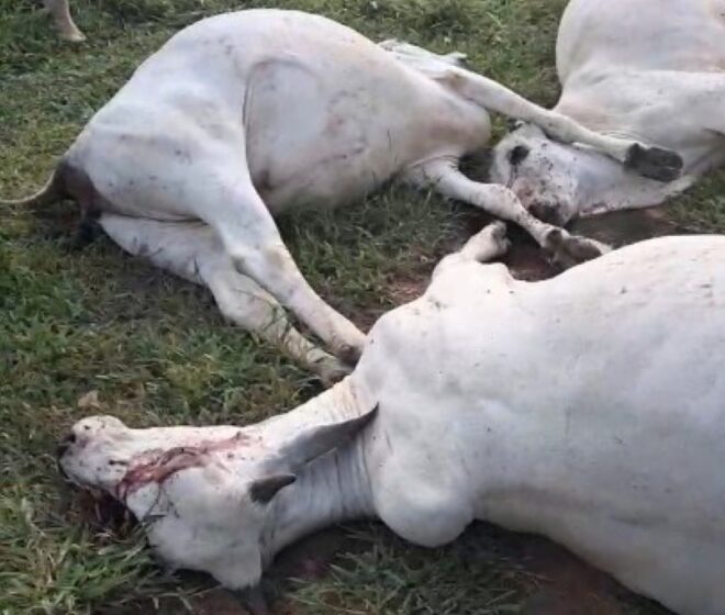 Um fio de energia elétrica solto causou a morte de cinco animais em uma propriedade rural no Ramal Santa Luzia, na BR-317, km 84, em Brasiléia nesta sexta-feira, dia 19. As vítimas foram quatro novilhas e um touro, eletrocutados no pasto onde a rede havia caído.