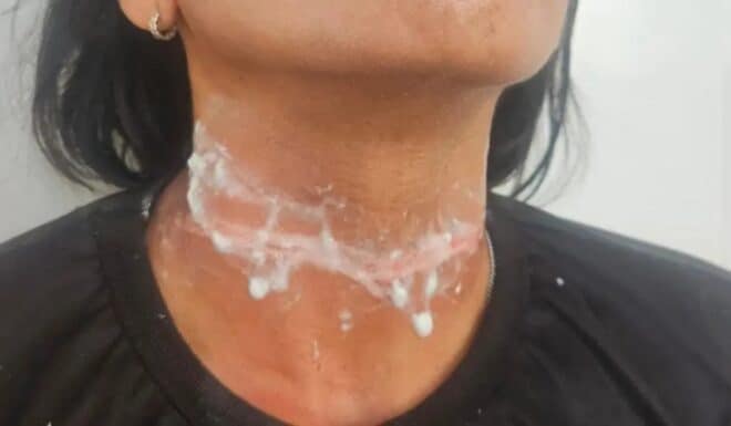 Nesta terça-feira, 3, Doroteia Alves de Oliveira, 42 anos, circulava de motocicleta na rua Espírito Santo, bairro da Floresta, quando foi surpreendida com um fio solto que atingiu seu pescoço, ocasionando queimaduras e lesões.