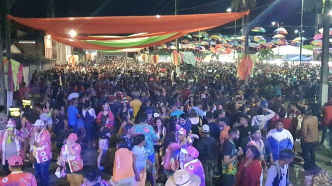 Mesmo com um dia chuvoso e noite fria, centenas de foliões marcaram presença na Praça Hugo Poli para brincar a 1ª noite do carnaval 2023 em Brasiléia. Este ano, a organização se deu através de uma parceria público privada entre a prefeitura e o empresário Naldo Maia, dono na Companhia Raio de Lua.