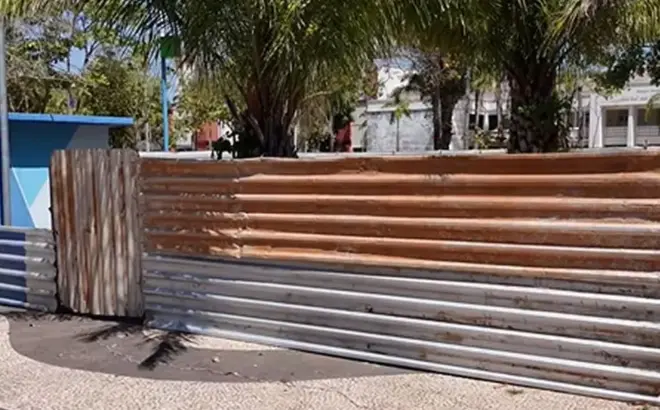 A estrutura, que se tornou atração turística e ponto de lazer para famílias, foi isolada por tapumes enquanto operários realizam trabalhos de restauração.