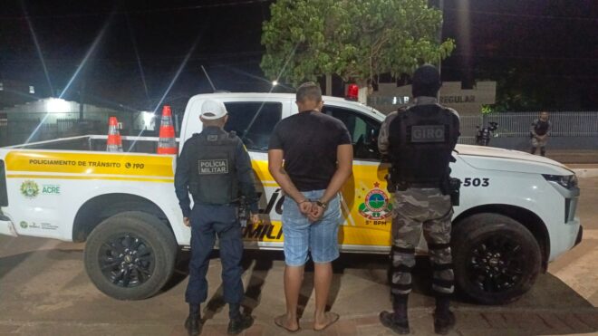 Na manhã desta sexta-feira (18), uma operação conjunta entre a equipe de trânsito e o Grupo de Intervenção Rápida e Ostensiva (GIRO) resultou na prisão de um homem foragido do estado de Rondônia. A abordagem ocorreu em uma blitz de rotina na cidade de Epitaciolândia, onde o indivíduo apresentou sinais de nervosismo ao ser parado pelos policiais.