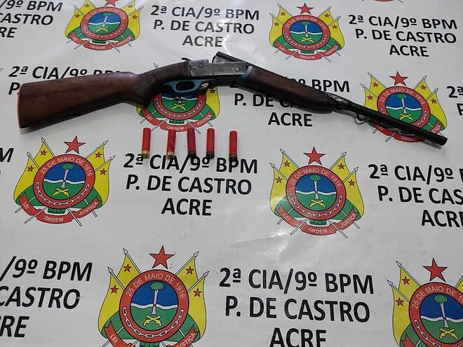 Os militares realizavam patrulhamento na rodovia AC-475, quando avistaram os dois suspeitos em uma motocicleta. A dupla, ao visualizar a viatura, abandonou o veículo e uma mochila contendo uma espingarda calibre .28 e cinco cartuchos intactos e adentraram em um matagal as margens da rodovia. Todavia, os militares conseguiram prendê-los.