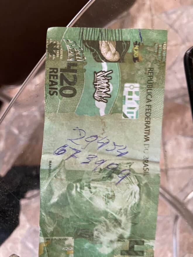 Durante a ação foi encontrada uma cédula de R$ 420,00, clara sátira, o que mais chamou atenção foram os desenho de maconha e bicho-preguiça estampados na nota. No outro lado da cédula falsa, a Efígide da República aparece soltando uma fumaça pela boca. Mesmo não havendo crime por não se tratar de falsificação, uma vez que a nota não existe, a cédula foi devidamente apreendida.
