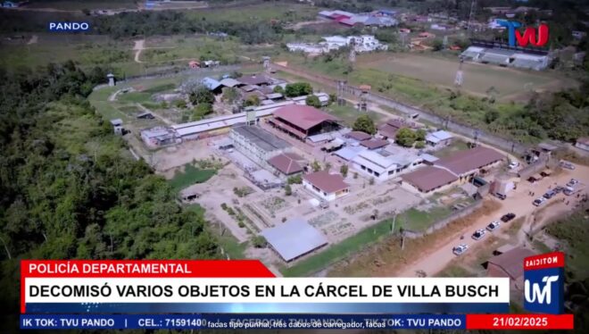 Uma força-tarefa realizada no Presídio Vila Busch, único estabelecimento prisional do departamento de Pando, na Bolívia, encontrou 91 objetos proibidos dentro das celas. A ação, realizada nesta sexta-feira (21), contou com a participação da polícia, do Ministério Público e da Corregedoria da Polícia Civil, como parte de uma investigação sobre a presença de itens ilícitos no local.