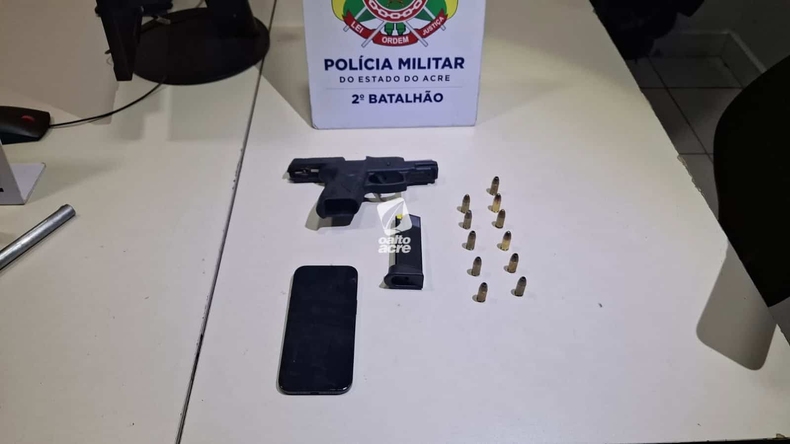 Uma ação rápida da Força Tática do 2º Batalhão da Polícia Militar do Acre (PMAC) resultou na apreensão de uma pistola calibre 9 mm e na detenção de três suspeitos, na noite desta quinta-feira (30), no Loteamento Farah, região do 2º Distrito de Rio Branco.