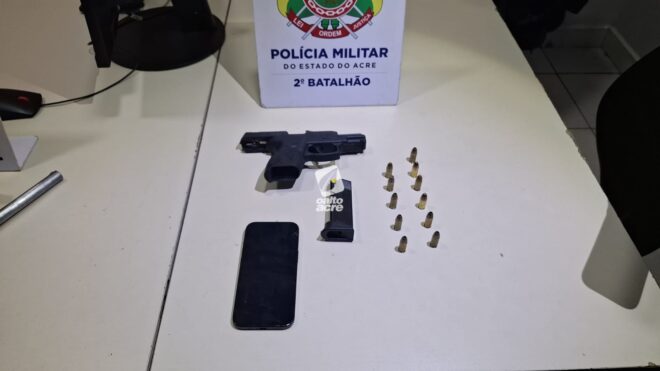 Uma ação rápida da Força Tática do 2º Batalhão da Polícia Militar do Acre (PMAC) resultou na apreensão de uma pistola calibre 9 mm e na detenção de três suspeitos, na noite desta quinta-feira (30), no Loteamento Farah, região do 2º Distrito de Rio Branco.