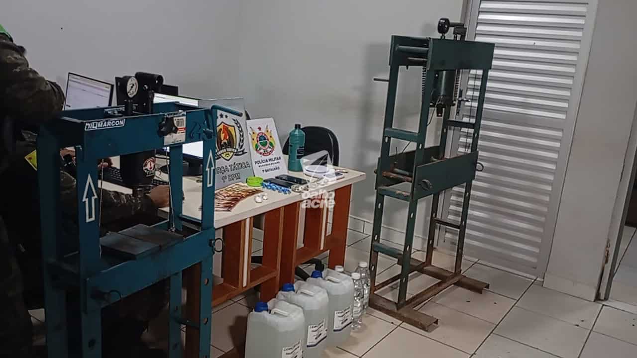 A operação foi desencadeada após denúncia informando que o imóvel estaria sendo usado para a fabricação de entorpecentes. A guarnição montou um cerco, conseguiu deter os suspeitos e apreendeu duas prensas, vários litros de solvente e drogas prontas para comercialização.