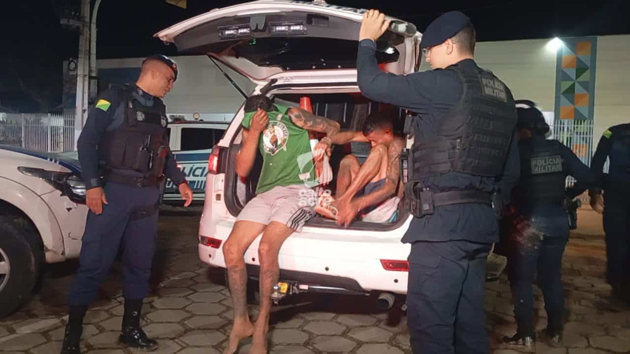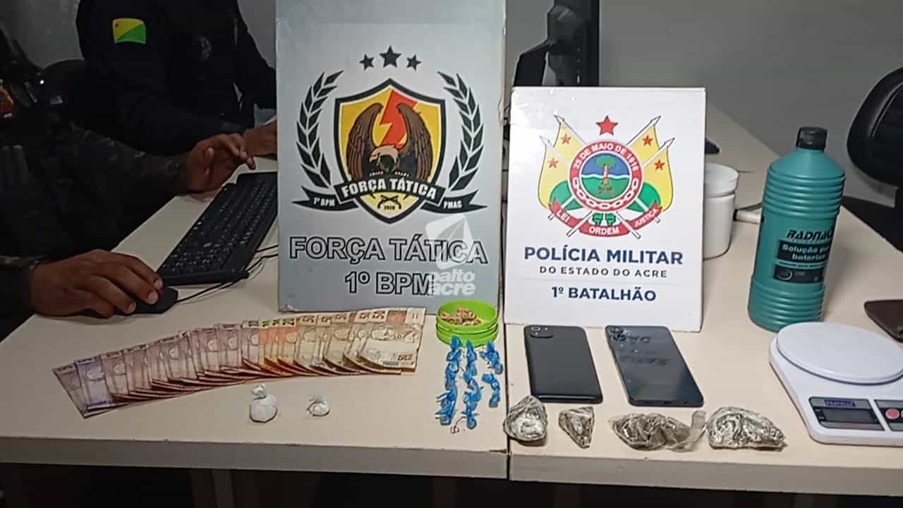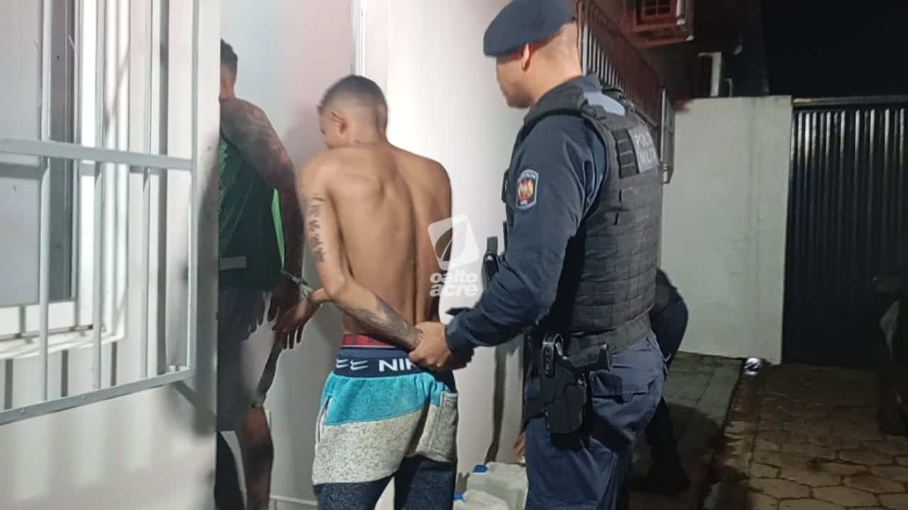 Uma ação da Força Tática do 1º Batalhão da Polícia Militar resultou na prisão de Moisés da Cruz Silva, de 36 anos, e Marcus Gomes de Lima, de 25, pelo crime de tráfico de drogas, na noite desta quarta-feira (10). O flagrante ocorreu em uma residência localizada na Rua Flamengo, no loteamento Mutambo, bairro Eldorado, em Rio Branco.