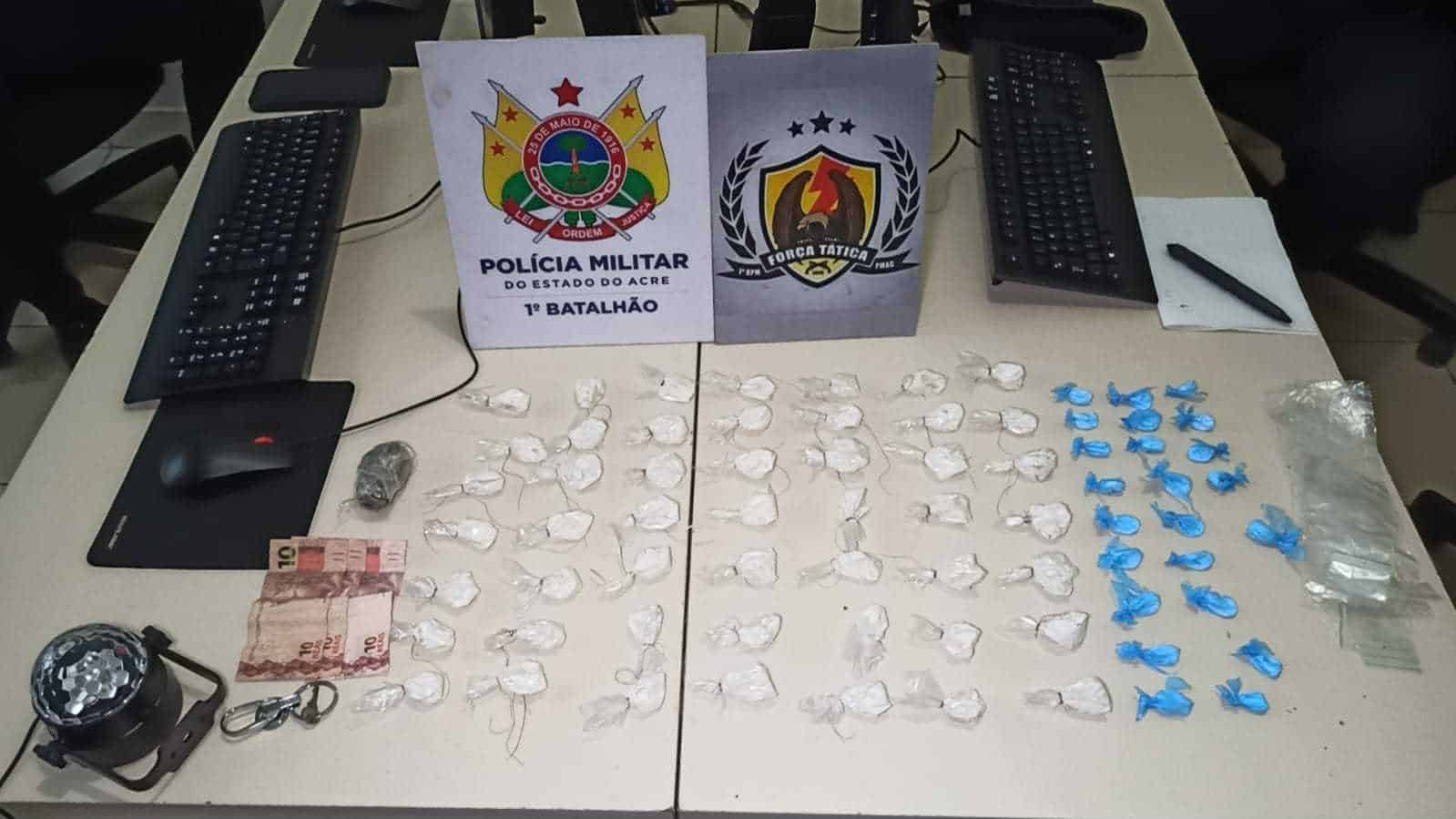 Na tarde desta segunda-feira, a Força Tática do 1° Batalhão efetuou a prisão de João Marcos Nascimento Oliveira, de 21 anos, acusado de tráfico de drogas. A ação ocorreu na rua Ingá, bairro Mocinha Magalhães, em Rio Branco, em uma região já conhecida pela intensa atividade de tráfico.