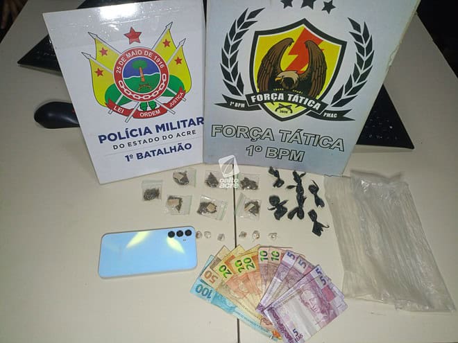 Na tarde deste sábado (4), uma operação da Força Tática do 1º Batalhão da Polícia Militar resultou na prisão de Carlos Eduardo Martins de Lima, flagrado comercializando entorpecentes atrás de uma escola no bairro Bahia Nova, na Baixada do Sobral, em Rio Branco.