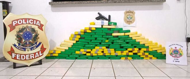 Policiais militares da Companhia de Policiamento Especializado do 6° Batalhão, da Polícia Militar do Acre (PMAC), em ação conjunta com as polícias Civil (PC), Federal (PF) e Penal (PP) denominada Operação Protetor, apreenderam 112 quilos de cocaína e uma arma de fogo. O fato ocorreu na madrugada desta sexta-feira, 29, em Mâncio Lima, no Vale do Juruá.