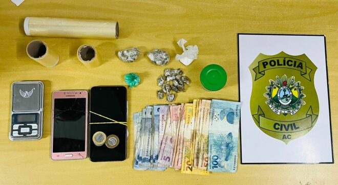 No início da noite da última quinta-feira, 14, uma ação conjunta entre das Polícias Civil e Militar (8º BPM), no município de Sena Madureira deu cumprimento a 2 (dois) mandados de busca e apreensão logrando êxito na prisão, em flagrante, de E. de S. O, 27 anos, e I.R. R. 28 anos, pela prática do crime de tráfico de drogas.